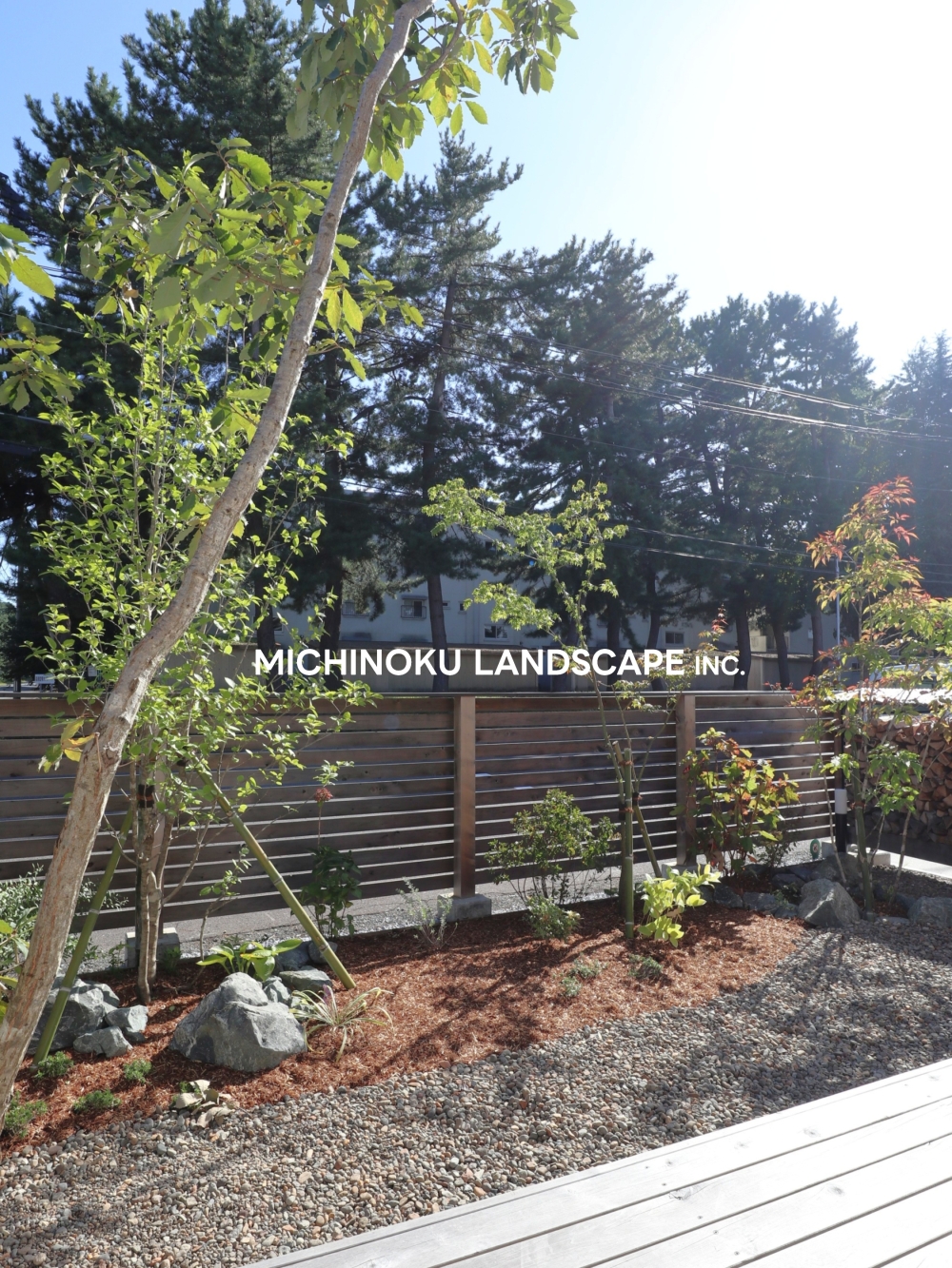 植栽以外のスペースには川砂利を敷きました。